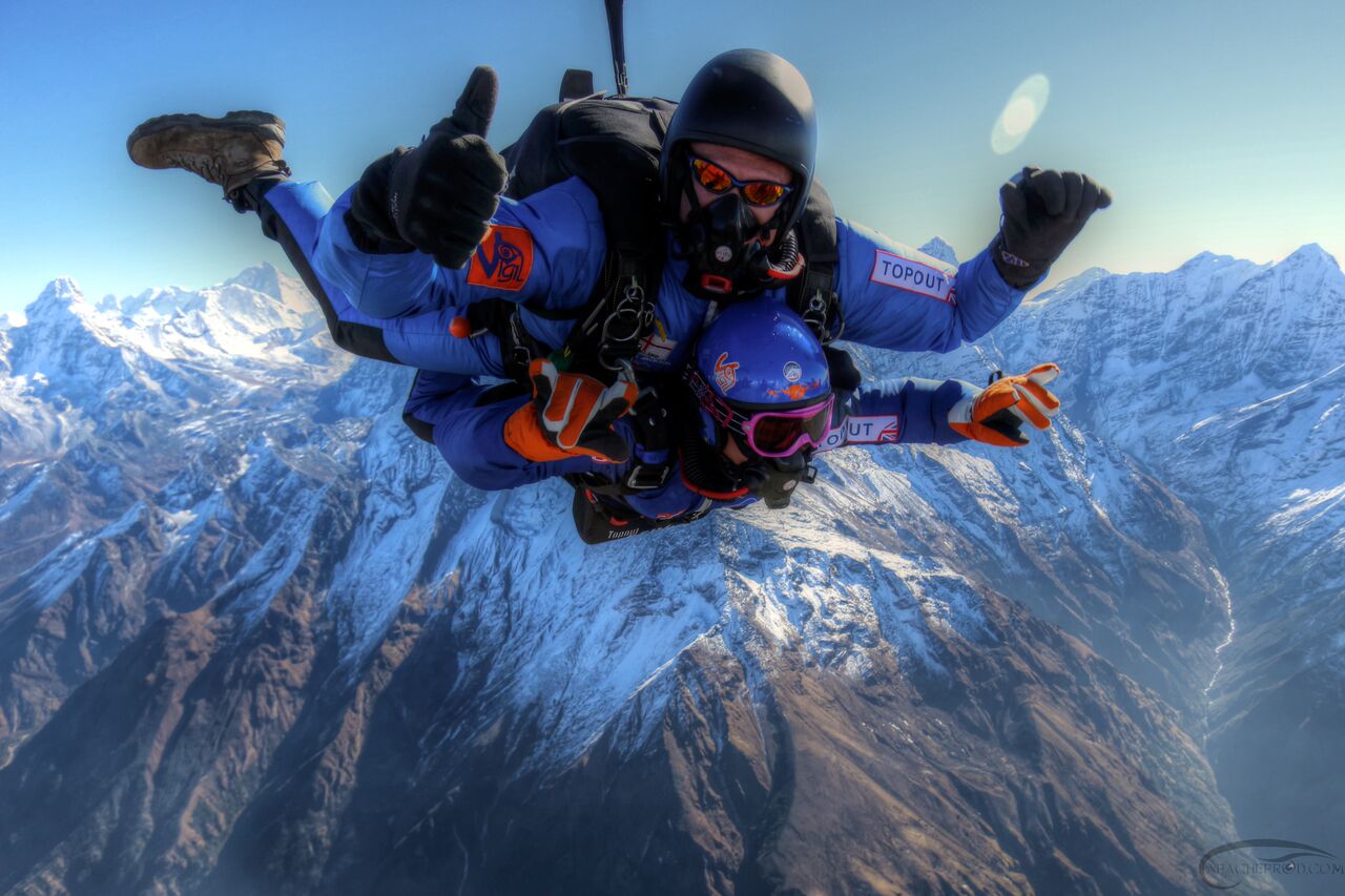 Beleef de ultieme vrije val met uitzicht op Mount Everest. Skydiven in Nepal is adembenemend én zeldzaam – enkel voor echte thrillseekers.